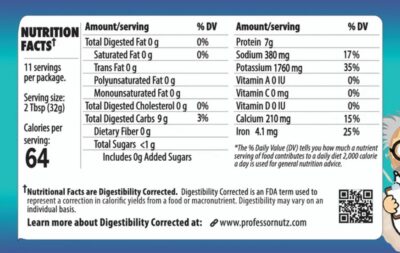 Professor Nutz™ has been “corrected” to digest very little fat or carbs. Our goal was zero. How much you actually digest will vary.